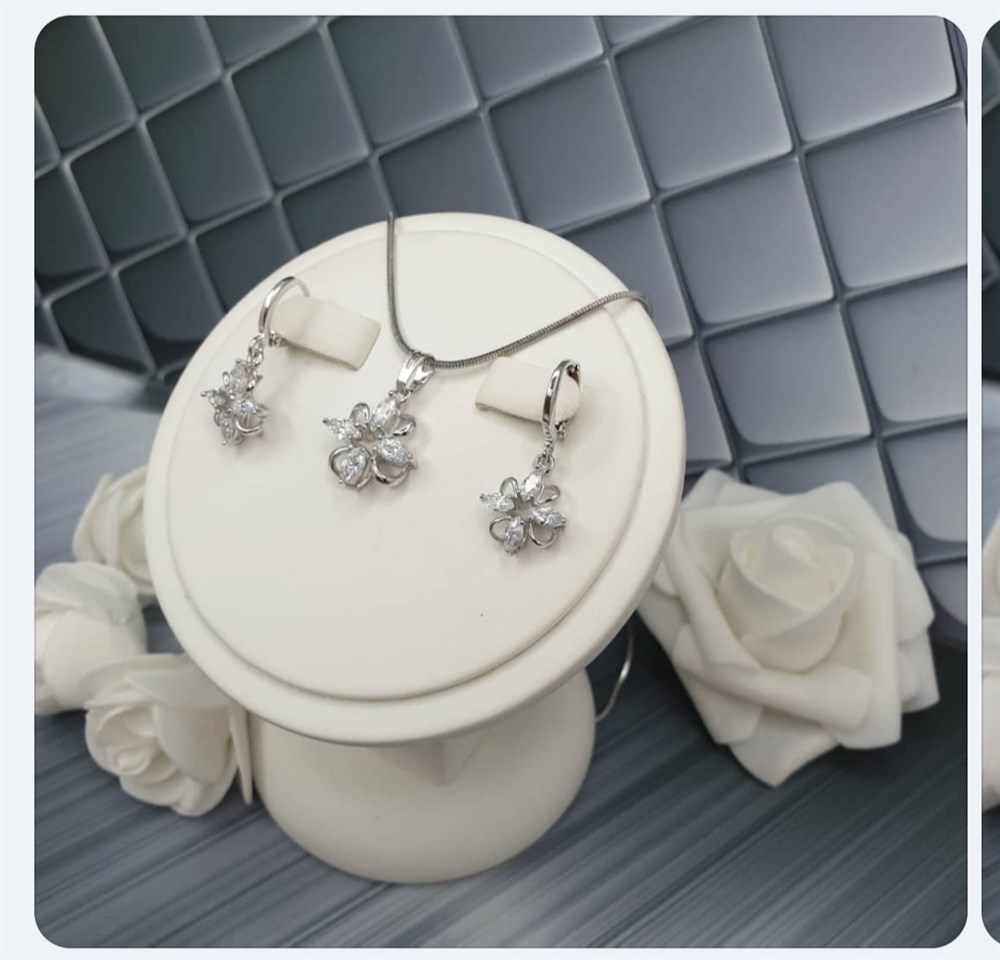 Набор :серьги +кулон Xuping Материал :медицинский сплав Цвет серебро Вставки циркон