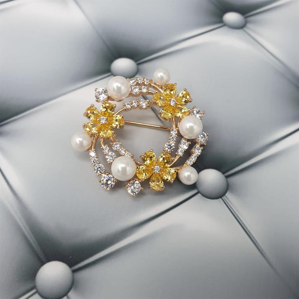 Брошь Xuping Материал :медицинский сплав Цвет позолота Вставки циркон, жемчуг культивированный Диаметр 2,5см