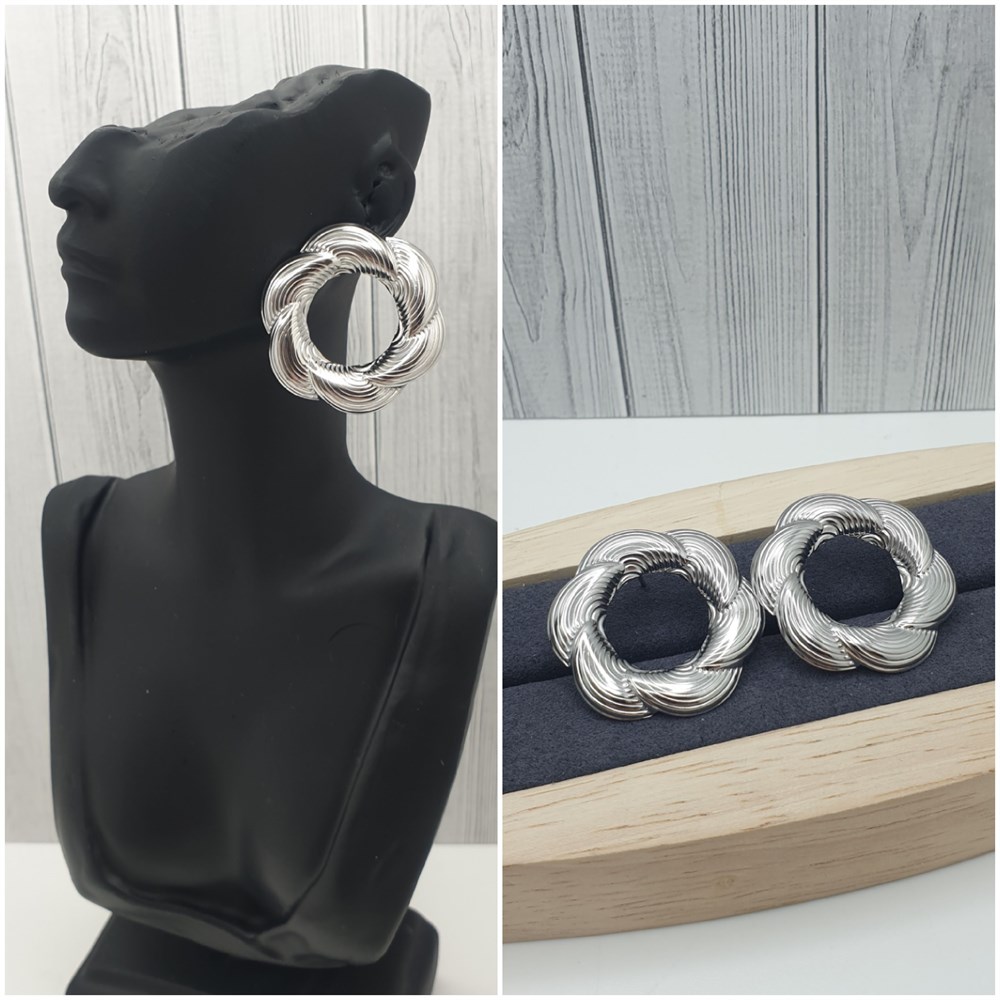 Серьги сталь ос-12337 /3см серебро пуссеты
