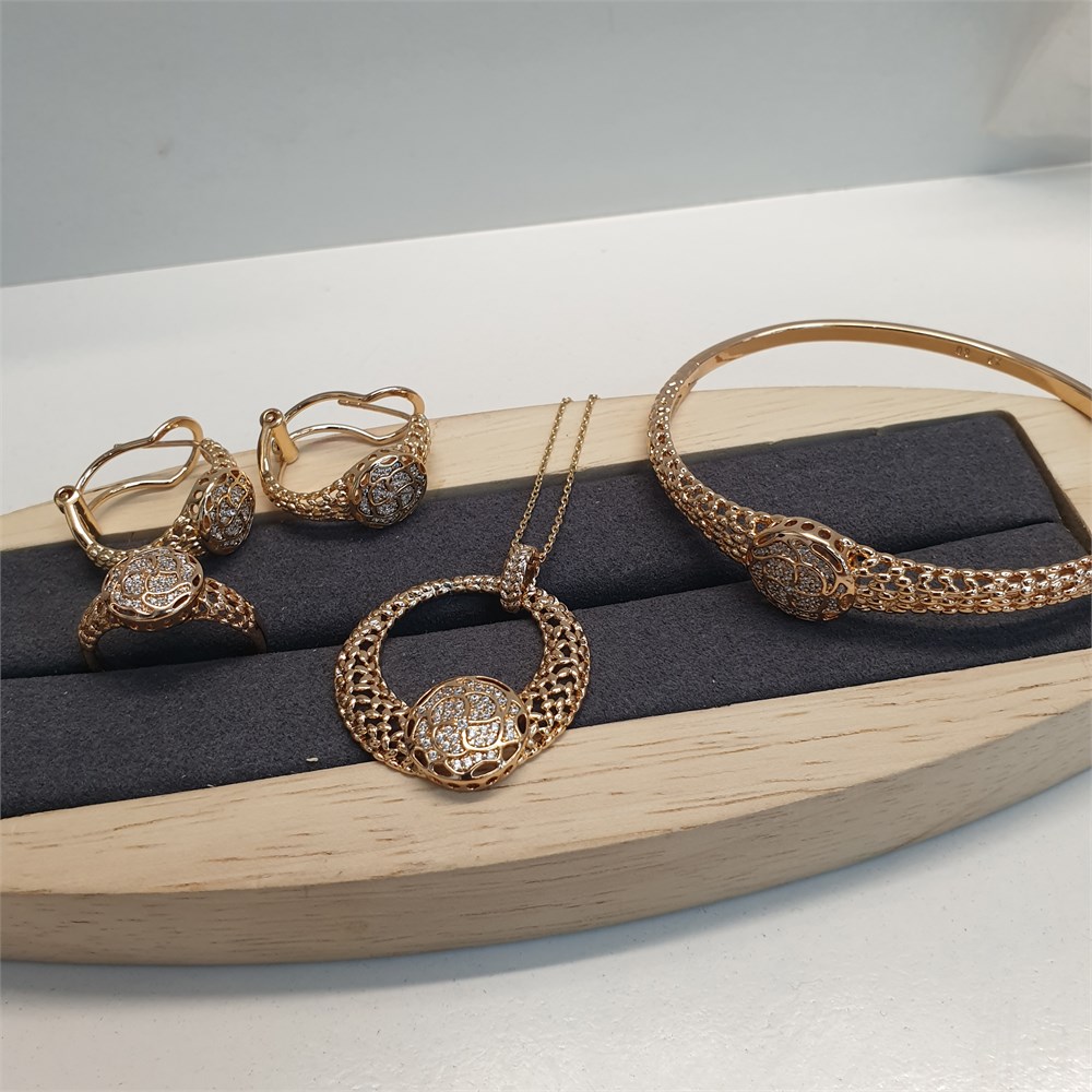 Набор:серьги +кулон +цепь 45см+кольцо+браслет